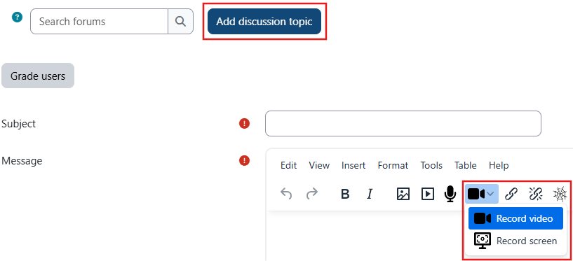 If you need to make videos for a Moodle forum post, you can do this directly on Moodle.