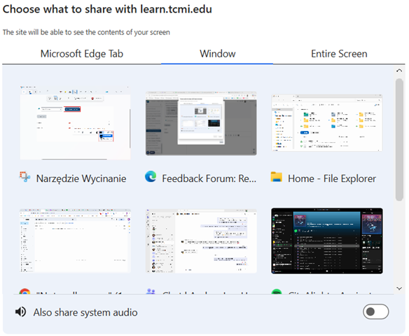 If you need to record your screen, choose what do you want to share.