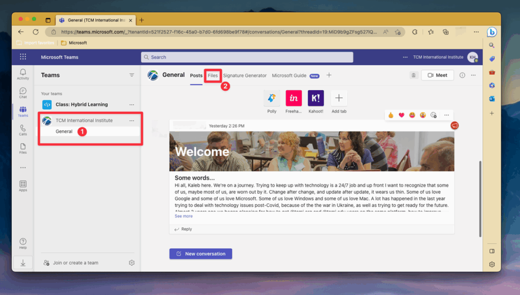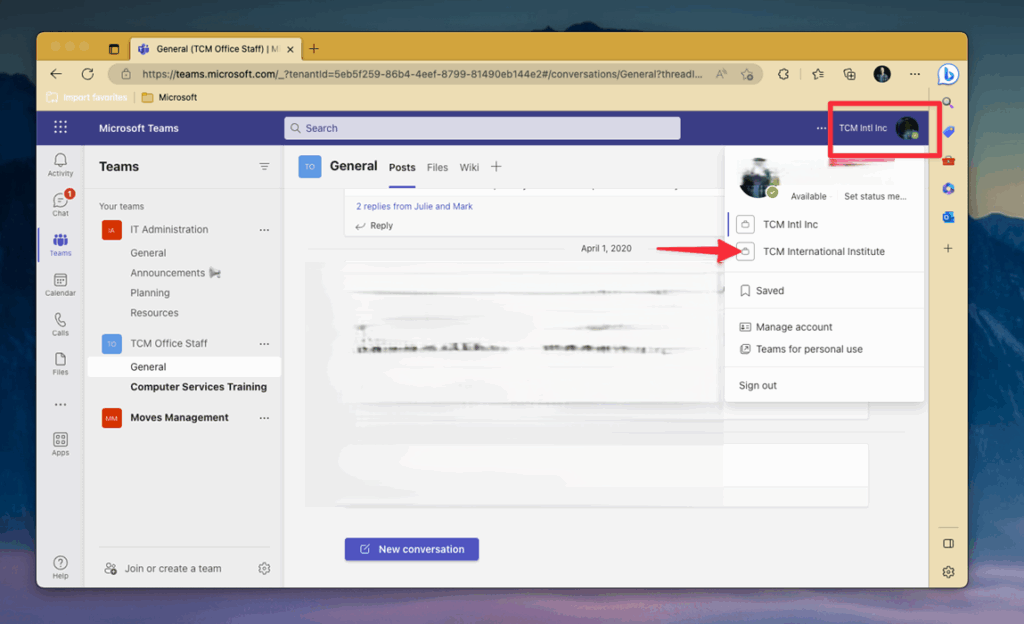 1. Locate the TCM International Institute Team in the left menu and click on General.