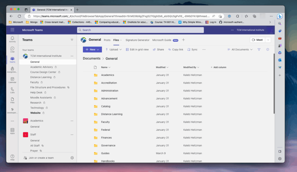 This is a temporary guide for how to access files from Teams and Sharepoint if you have a @tcmi.org email address and are a staff member. If you are a student or faculty member looking for our general guide on how to find and open files in Teams, please visit this guide.